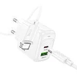 Мзп Hoco CS55A (блок на Usb i Type C + Type c/Lighting) 30w White