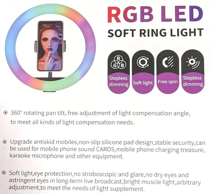 Лампа-кільце Rgb MJ-26 26cm (з тримачем, без підставки) Black