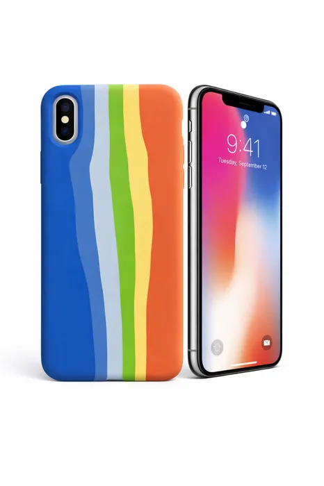 Силікон "Оригінал Велюр" iPhone X/XS №2 (dark blue, blue, grey, green, yellow, orange)