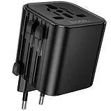 Адаптер єврорезетка з 3 Hoco AC29 Black